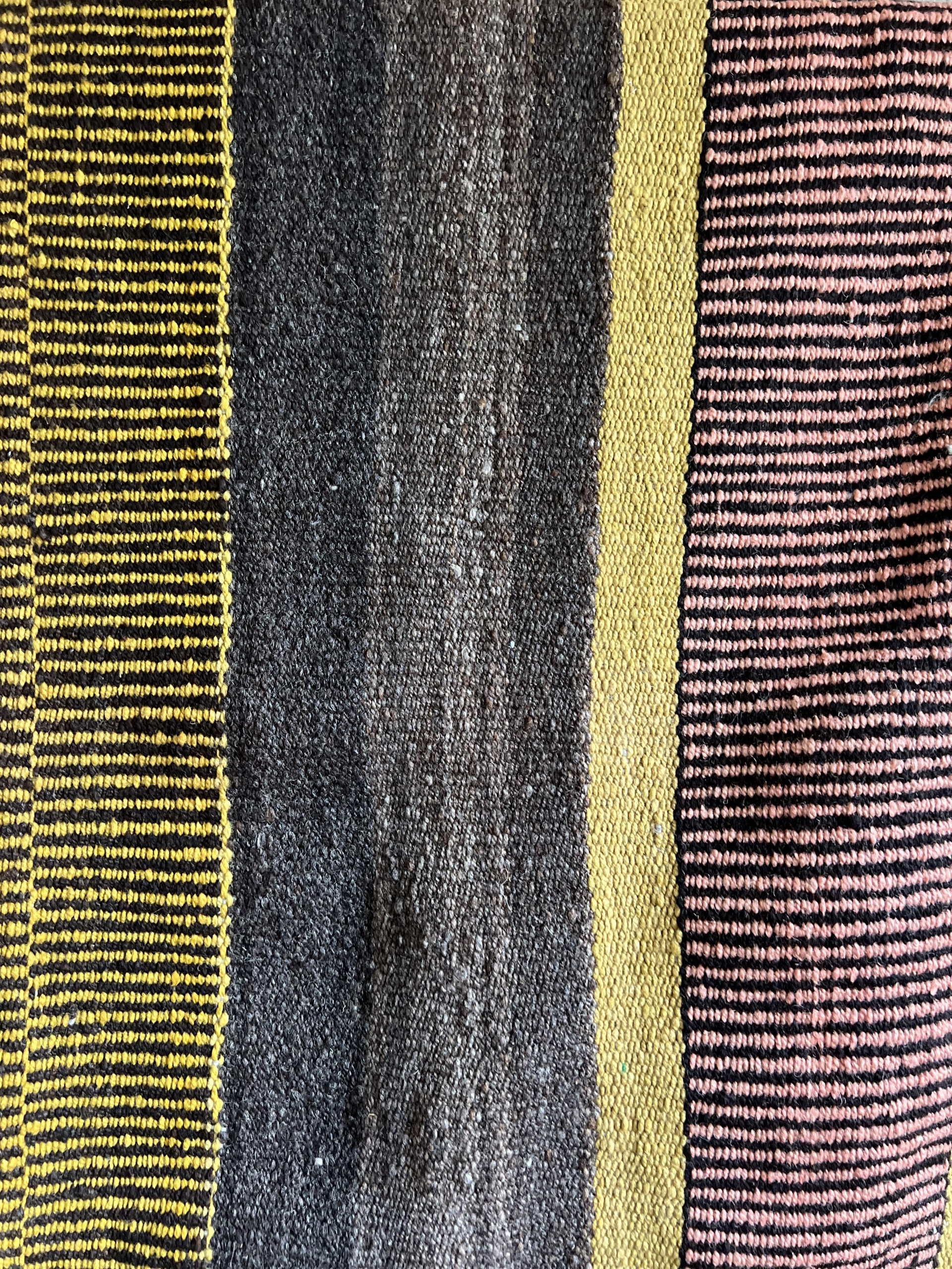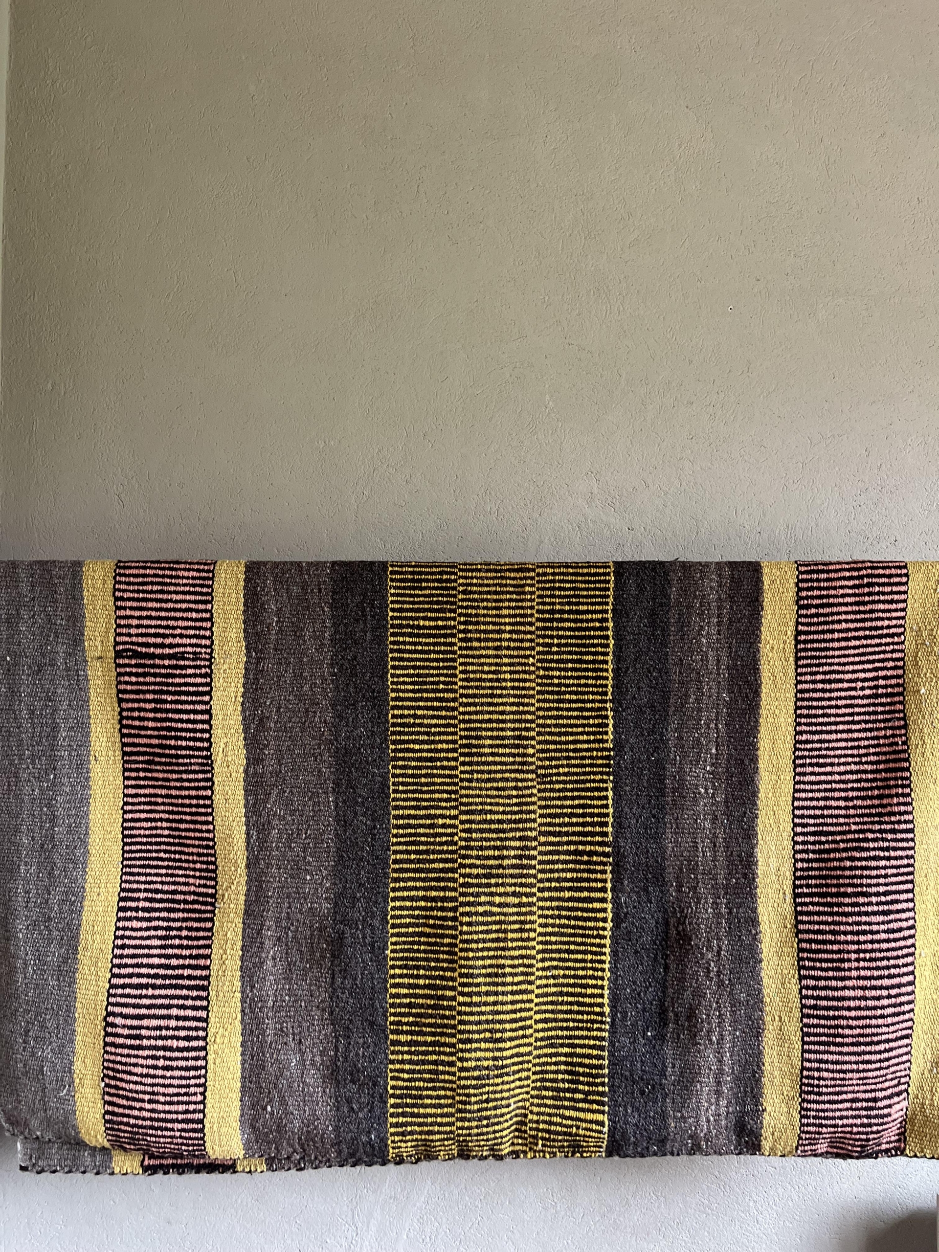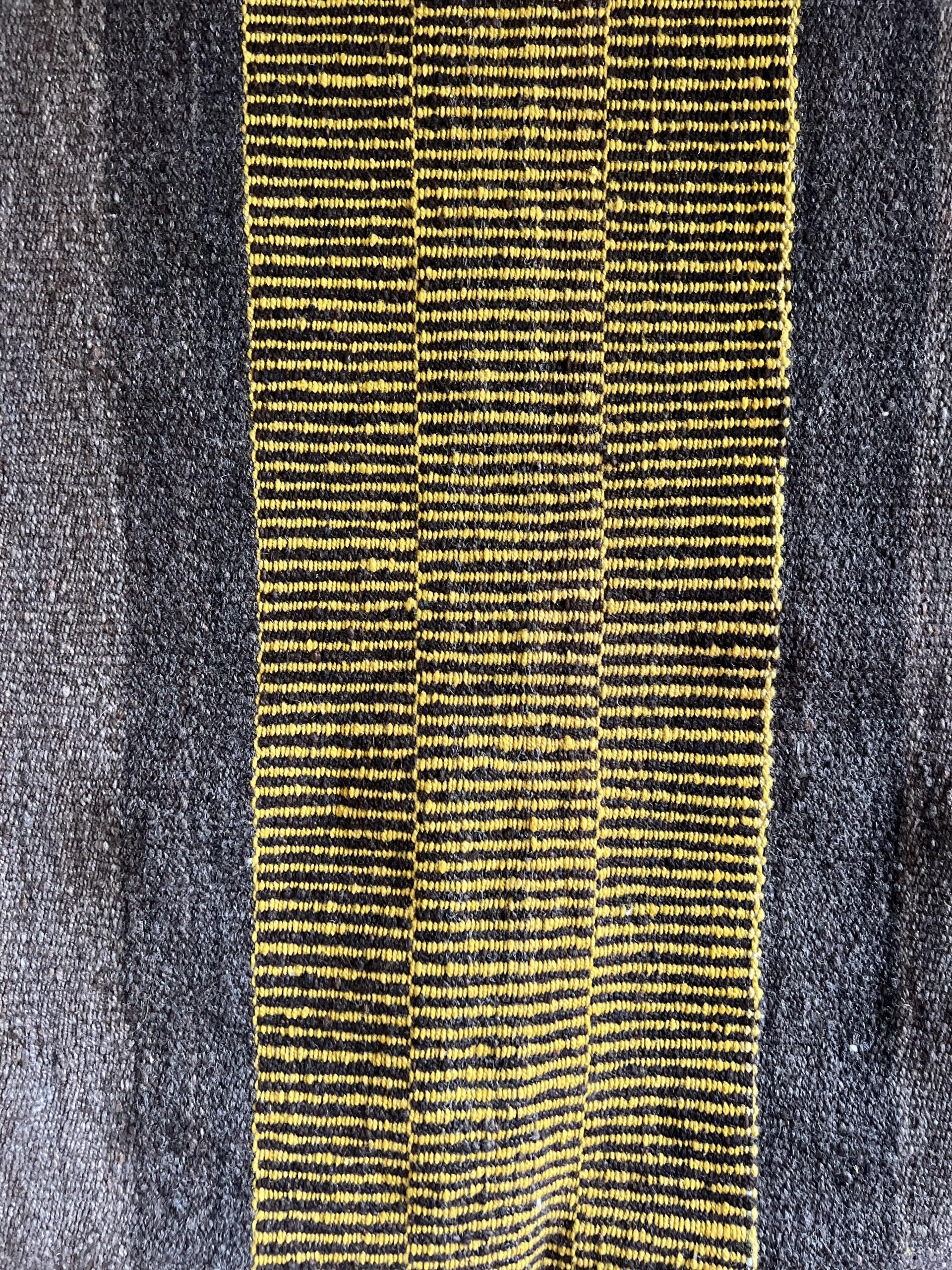 Matra grande, tejida con lana de oveja. Hilado 100% a mano. Tintes naturales. Trama: peineicillo. Tecnica ancestral. Telar vertical mapuche. Se puede usar como alfombra, pie de cama, tapiz.