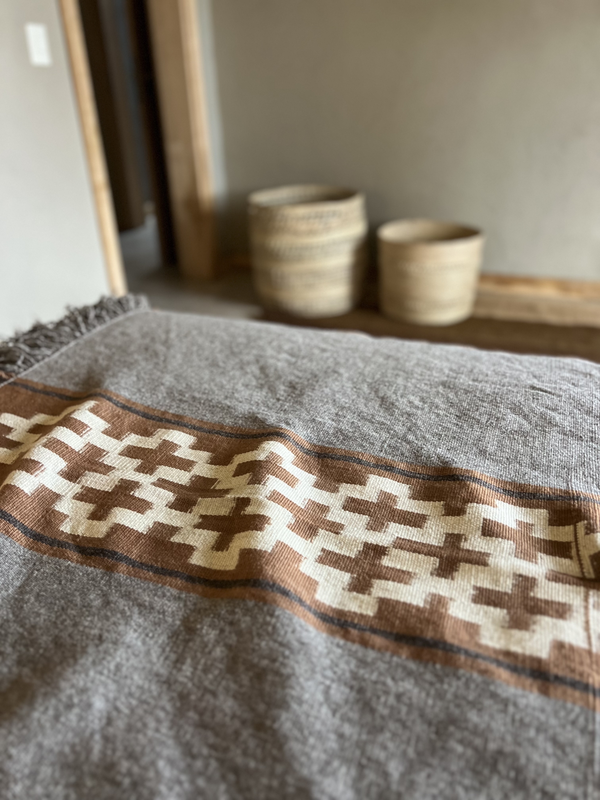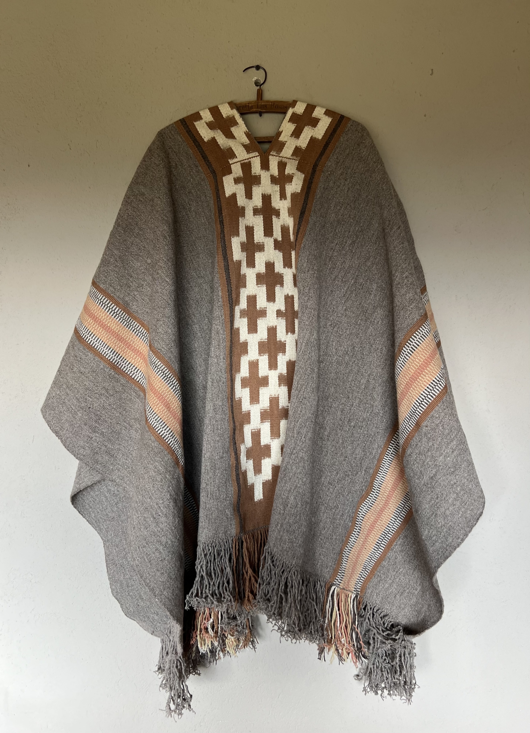 Poncho tejido a mano en telar vertical mapuche. Amarrado y peinecillo. Lana 100% oveja. Tintes naturales. Para toda la vida.