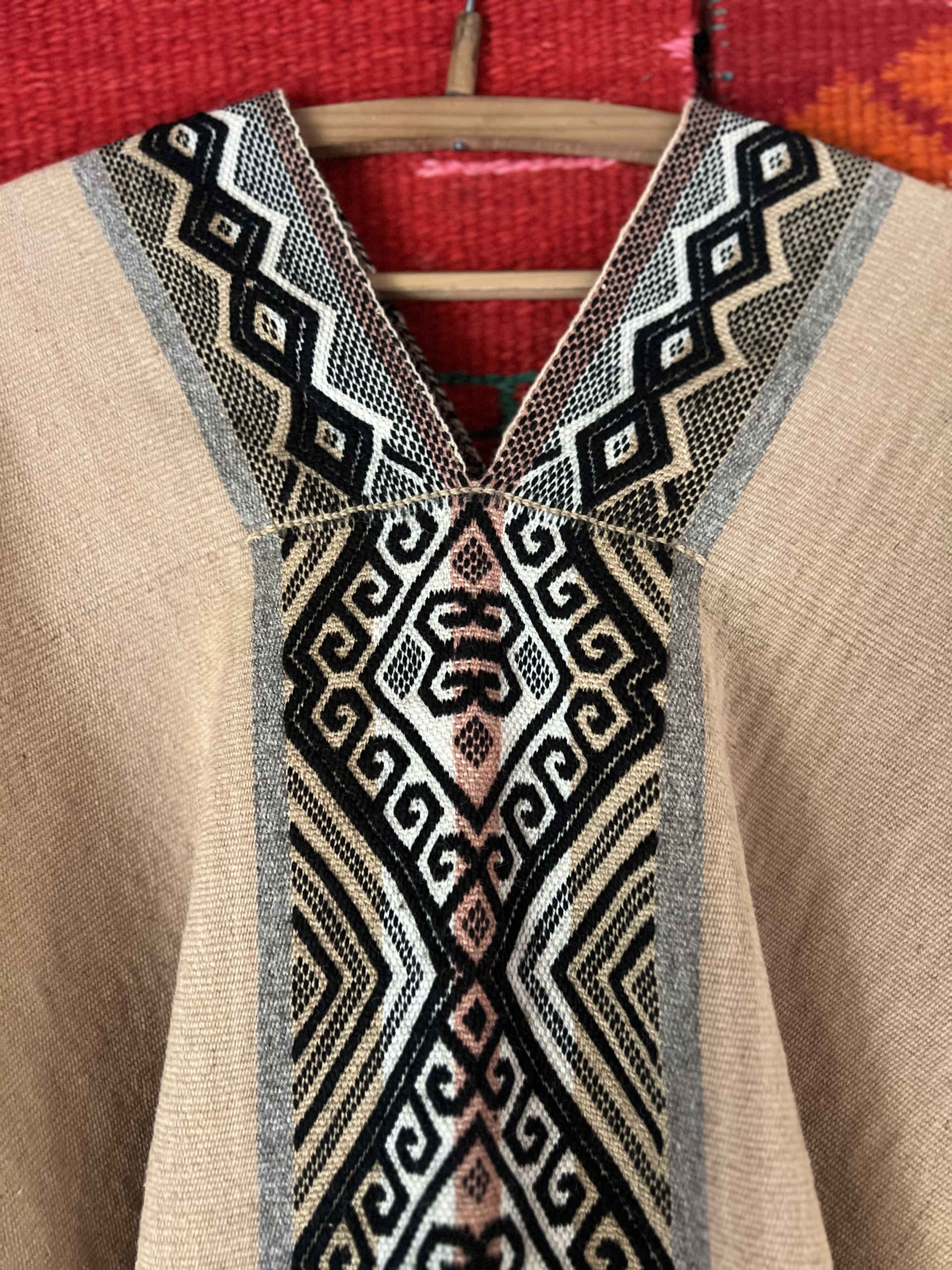 Poncho tejido a mano en telar vertical mapuche. Labor. Lana 100% oveja. Tintes naturales. Para toda la vida.