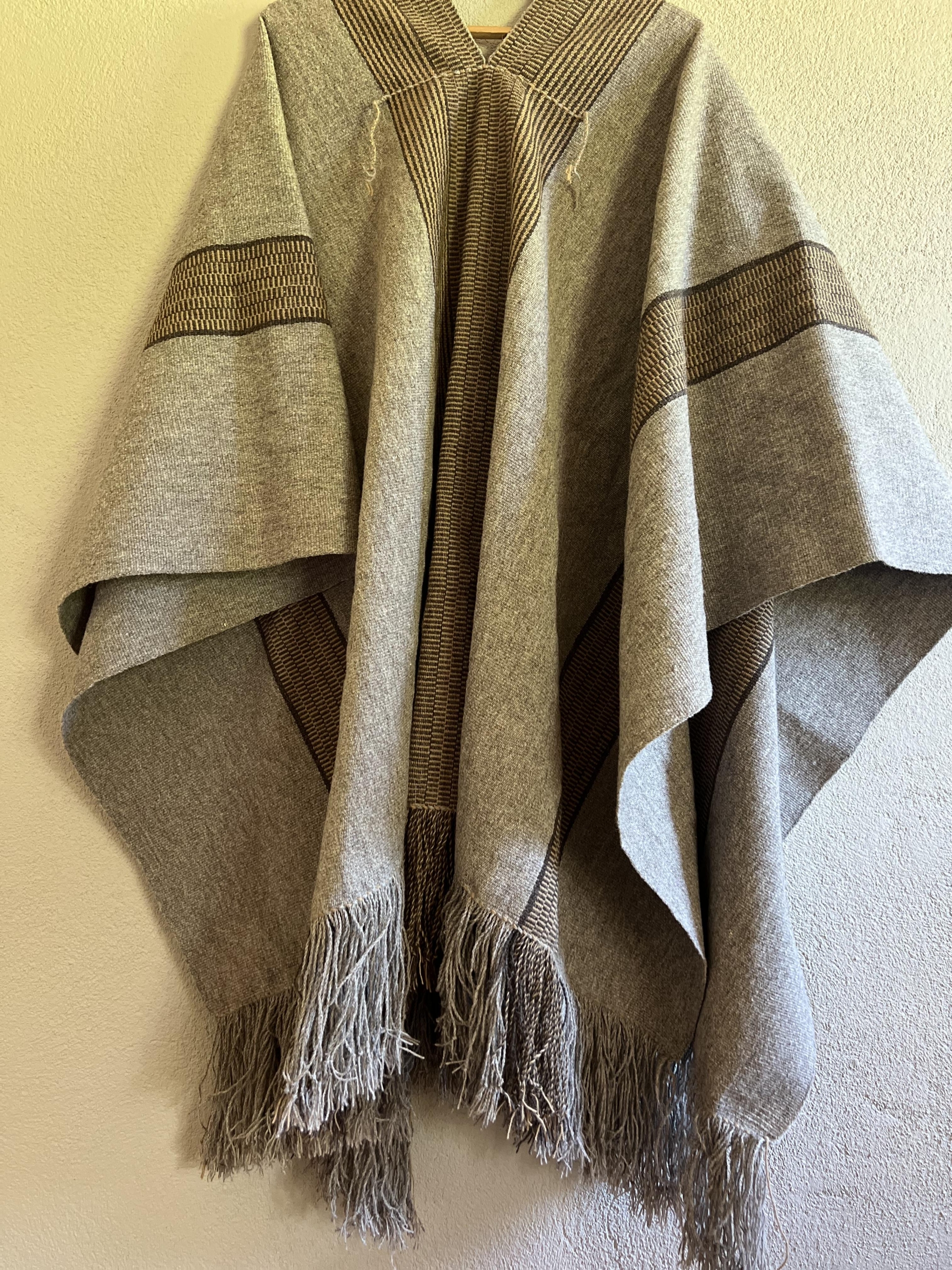 Poncho tejido a mano en telar vertical mapuche. Peinecillo. Lana 100% oveja. Tintes naturales. Para toda la vida.